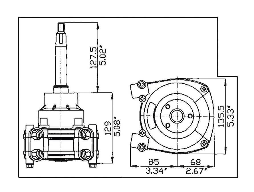 Metalowa przekładnia kierownicza, sterociąg do silników przyczepnych, zaburtowych łodzi i jachtów motorowych. Trzpień usytuowany centralnie względem osi przekładni.